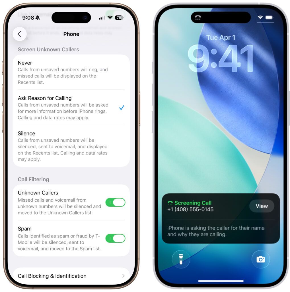 Tired of mystery calls? Call Screening can ask unknown callers to state their name and why they’re calling before your iPhone rings. You’ll see a short transcript to help you decide whether to pick up. Many spam callers hang up at this step.