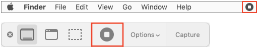 However you start a recording, you can stop it in one of two ways. A stop button always appears on the menu bar; click it to finish and save the recording. On a smaller laptop screen, it’s possible for the menu bar button to be obscured, so here’s an alternative method: press Command-Shift-5 again, and the recording controls are replaced by a stop button.