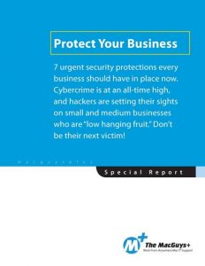 It is our company’s mission to stop cybercrime, so we have put together a FREE Executive Report titled “7 Urgent Security Protections Every Business Should Have In Place Now”. This Free Report Outlines 7 Most Critical IT Security Protections Every Business Must Have In Place Now To Protect Themselves From Cybercrime, Data Breaches And Hacker Attacks.